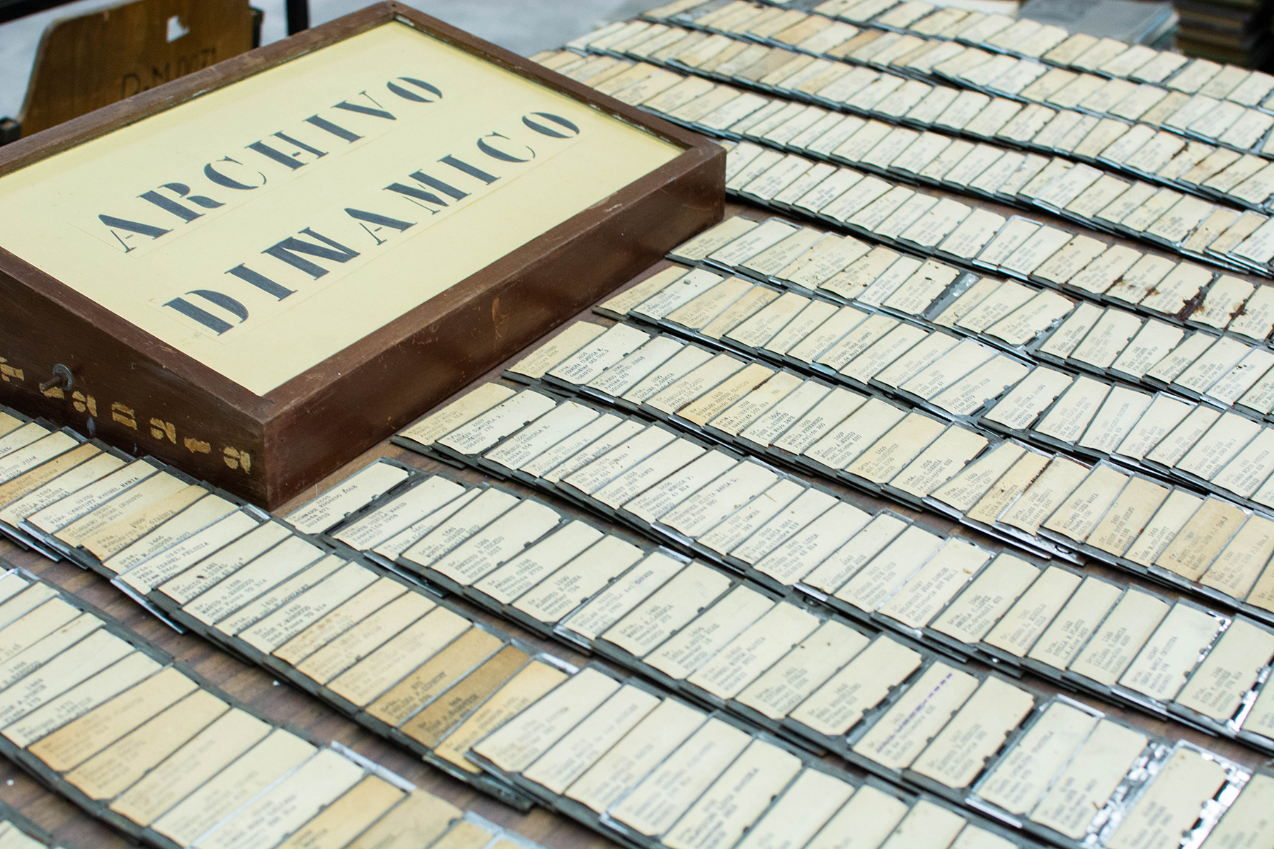 Foto 2: Placas realizadas con duplicadoras para la reproducción de documentos por transferencia de tinta, usadas por La Vigil para envío de correspondencia a los más de 600 socixs y para instituciones de todas partes del mundo por relaciones de Canje