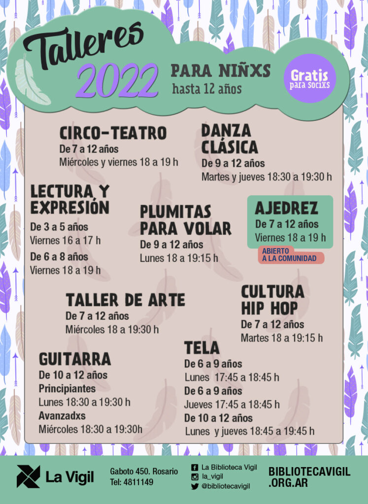 Para poder concurrir a los Talleres de La Vigil es necesario ser socix, con excepción del Taller de Ajedrez que corresponde al Programa Municipal de Ajedrez.