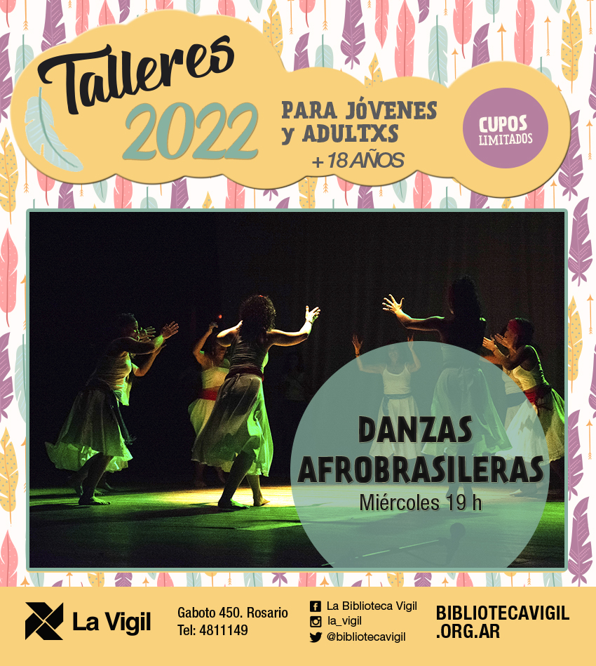 ▬ Danzas Afrobrasileras Natalia Nisnievich (+18) El taller nos propone visitar desde el movimiento los legados africanos de América del Sur, a través de sus danzas, cantos, ritmos, mitos e historias. Una exploración cultural, transformadora y placentera para descubrir nuevas formas de relacionarnos con el cuerpo y redescubrir una herencia estética silenciada por generaciones. Miércoles 19 h.
