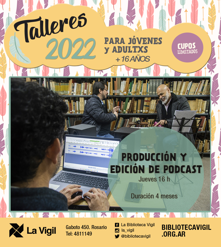 Hola! Para el taller de Podcast aún queda lugar. Se cursa los Jueves de 16 a 18 hs y es para mayores de 16 años. Para anotarte o mas info, acercate a Gaboto 450 de 14 a 20 hs.