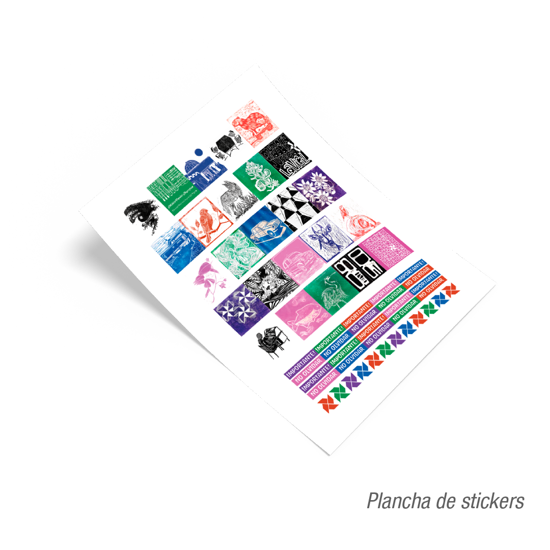Como complemento, trae una plancha de stickers para customizar tu agenda, un elástico de cierre y un sobre en la contratapa para guardar todo lo que necesites.